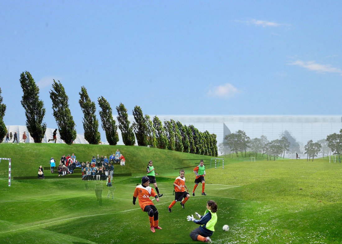 Light traffic route forms a spine through the sports park, functioning as a link between the different fields that vary in size and landscapes.